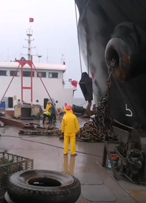 5、打開連接鏈環,在它的后端鏈怎么迅速的解開錨鏈絞花環連上送出纜,送出纜的另一頭固定在纜樁上。