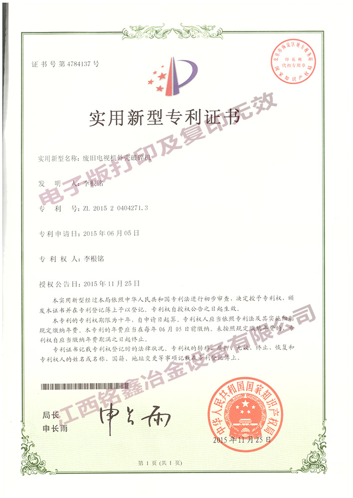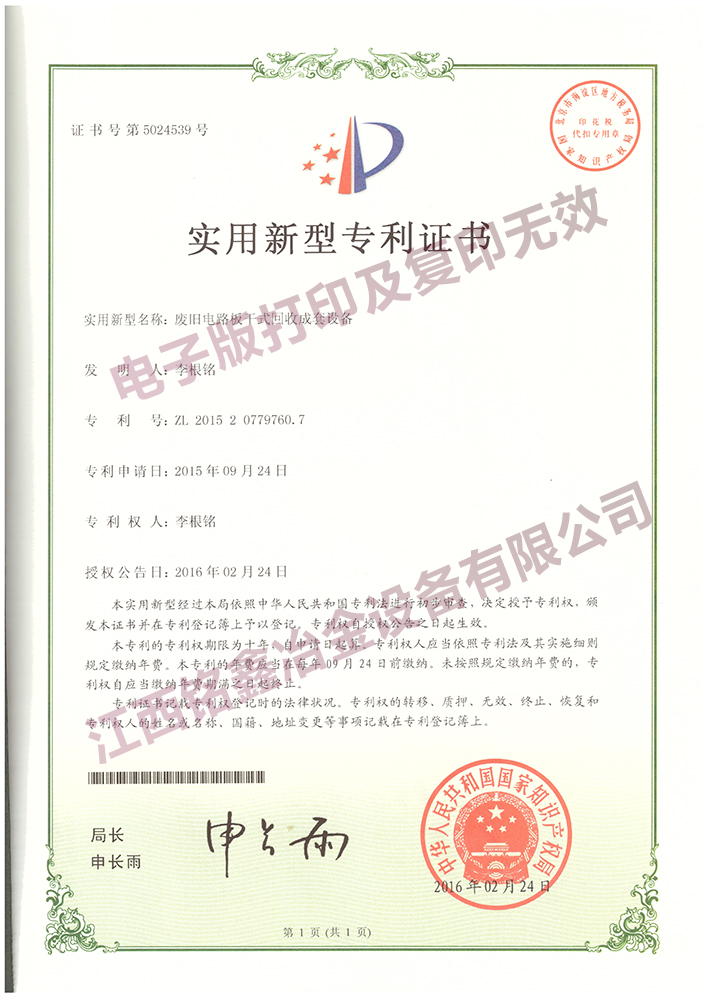 廢舊電路板干式回收成套設備- ZL20150779760.7